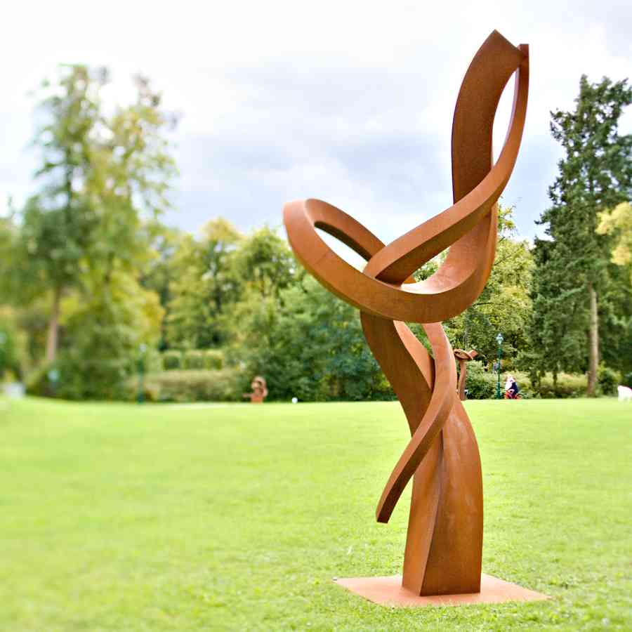 Der freischaffende Bildhauer Faxe Müller lebt und arbeitet im Spessart. Nach einer Ausbildung zum Mechaniker hat er sich zunächst mit figurativen Skulpturen beschäftigt und mit Materialien wie Holz und Stein gearbeitet. Am Ende war Corten-Stahl das Medium, das seinem Gestaltungswillen entgegenkam. Der Schwere des Metalls gewinnt Müller eine Leichtigkeit und Eleganz ab, die zugleich verwundert und bezaubert. Anmutig und fast pflanzenähnlich ranken sich die Körper in den Raum. Ihre Ausdehnung wirkt dynamisch, ja tänzerisch, wobei die Biegungen und Drehungen genau berechnet sind. Sein 25jähriges Schaffen wurde durch eine Reihe von Preisen und Auszeichnungen gewürdigt.